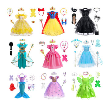 Kızlar prenses kostüm kar kraliçe Mermaid Cosplay noel doğum günü partisi karnaval aksesuar seti ile